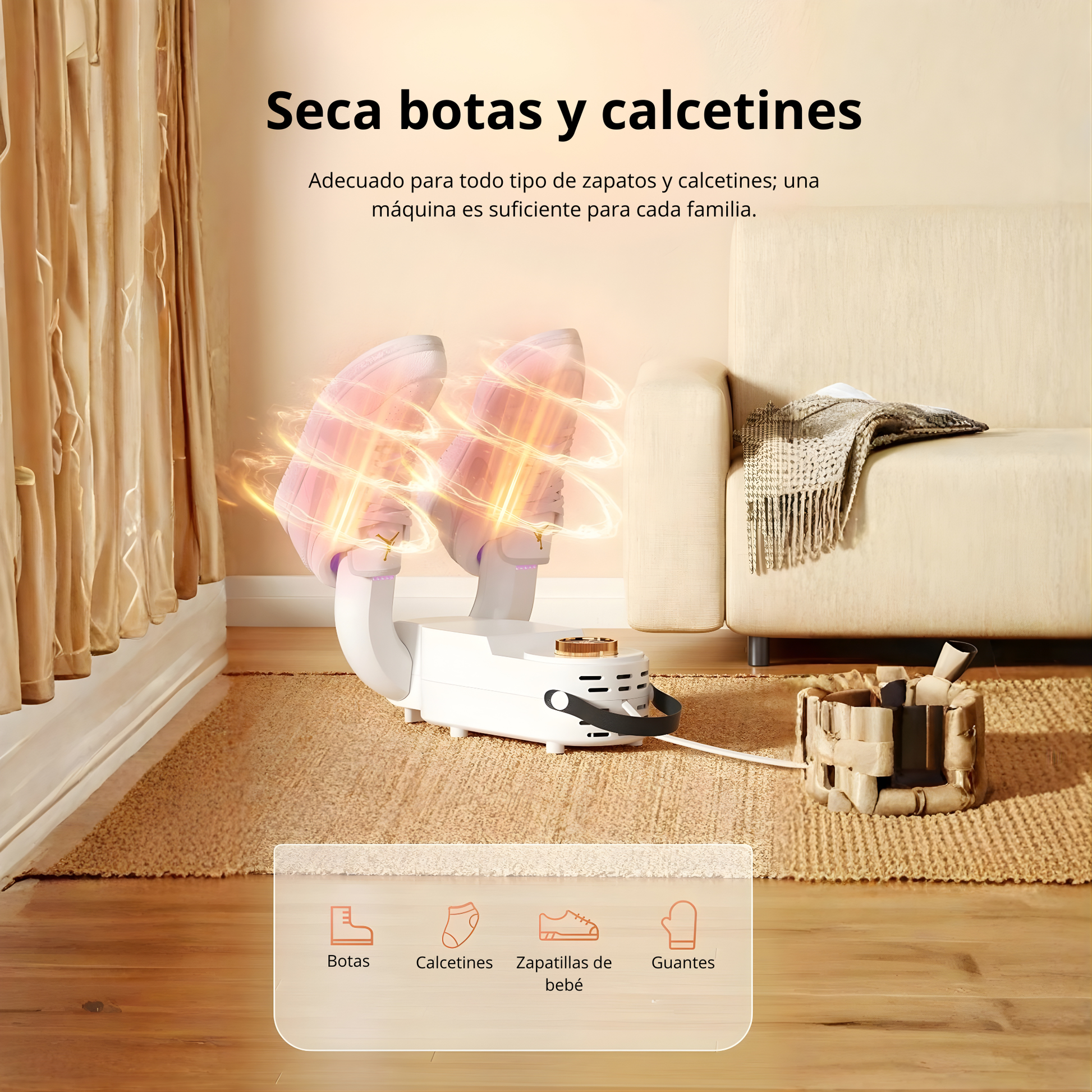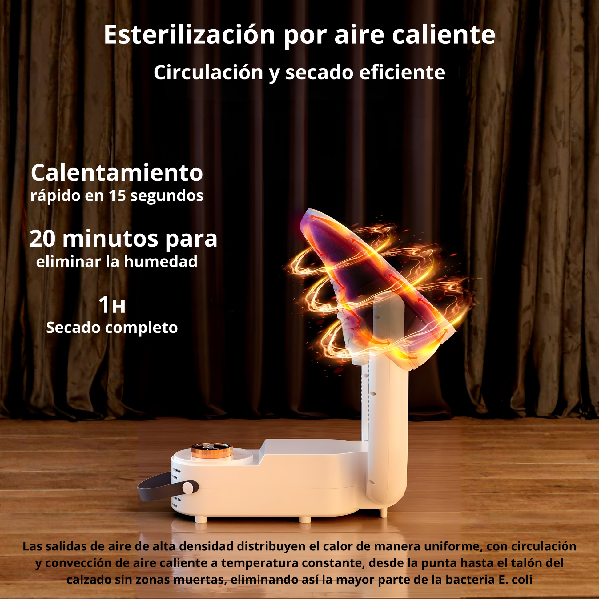 Seca tus zapatos en minutos con aire caliente uniforme y luz UVC antibacteriana.